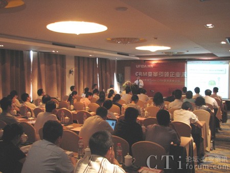 CTI論壇(ctiforum)08月28日消息: 2009年用友TurboCRM管理高峰論壇2009年8月7日在杭舉行,眾多來自杭州及其周邊地區(qū)企業(yè)的的銷售總監(jiān)、市場經(jīng)理和企業(yè)老板匯聚一堂,共同聆聽專家對企業(yè)在危機中的應(yīng)變策略,共同探討轉(zhuǎn)型升級之道。