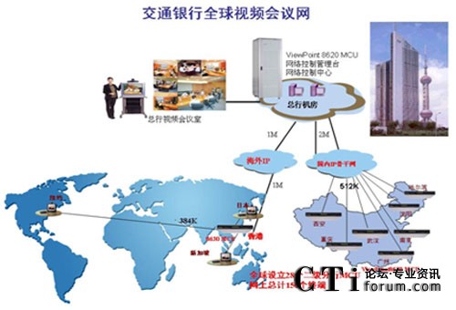 華為視訊構(gòu)建的視頻會(huì)議系統(tǒng)覆蓋交通銀行全國(guó)27個(gè)省級(jí)分行和全球6個(gè)分支機(jī)構(gòu),采用三級(jí)組網(wǎng)模式。系統(tǒng)主會(huì)場(chǎng)在上海交通銀行總部。系統(tǒng)采用IP組網(wǎng),總行采用一套ViewPoint8620視訊交換平臺(tái)作為頂級(jí)平臺(tái)、各省分行及海外分行采用28套ViewPoint8630 IP視訊平臺(tái)作為二級(jí)平臺(tái),各地市分行按當(dāng)?shù)氐臉I(yè)務(wù)需求或采用會(huì)議電視終端掛在省分行的二級(jí)MCU下,或放置一套ViewPoint8630 MCU組建本地市分行的三級(jí)視頻會(huì)議網(wǎng)絡(luò),并有效接入總行的MCU平臺(tái)。網(wǎng)上目前總計(jì)有150套終端,實(shí)現(xiàn)了交通銀行總部和全球所有分支機(jī)構(gòu)之間的遠(yuǎn)程會(huì)議、視頻溝通、遠(yuǎn)程培訓(xùn)等功能。在節(jié)約寶貴時(shí)間、精力和金錢的同時(shí),提高了銀行管理和決策的效率。