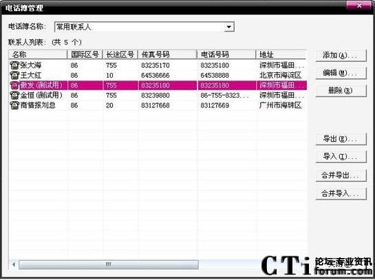 在A8電腦傳真機(jī)的電話(huà)商務(wù)通軟件主界面,雙擊通話(huà)記錄中的某個(gè)客戶(hù)號(hào)碼,或選中該號(hào)碼點(diǎn)擊下面的通話(huà)歷史按鈕,您與該客戶(hù)的通話(huà)歷史便一覽無(wú)余。選中某個(gè)記錄,您可以對(duì)其進(jìn)行編輯(添加姓名、備注該次通話(huà)的內(nèi)容),刪除,軟件撥出,加入電話(huà)簿等操作。
