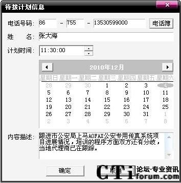 A8電腦傳真機(jī)的通話(huà)記錄和通話(huà)歷史讓您記住過(guò)去,來(lái)電彈屏和自動(dòng)答錄助您處理現(xiàn)在,待撥計(jì)劃和到時(shí)提醒則幫您安排未來(lái)。點(diǎn)擊電話(huà)商務(wù)通主界面中的待撥計(jì)劃按鈕,出現(xiàn)您未來(lái)將要撥出電話(huà)的日程安排,您可以對(duì)其進(jìn)行添加、編輯和刪除等操作。時(shí)間一到A8電腦傳真機(jī)會(huì)自動(dòng)彈屏提醒,待撥計(jì)劃中的電話(huà)一經(jīng)撥出,A8會(huì)自動(dòng)刪除該電話(huà)號(hào)碼。