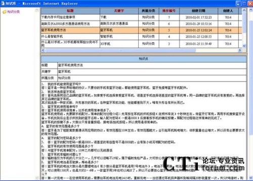 知識(shí)庫(kù)可以由企業(yè)相關(guān)人員自行設(shè)定、更新最新的產(chǎn)品知識(shí)、市場(chǎng)信息和競(jìng)爭(zhēng)產(chǎn)品比較等信息。強(qiáng)大的搜索功能也使得查詢更加便利。如當(dāng)客戶提出某問題使得服務(wù)人員無(wú)法立即回答時(shí),系統(tǒng)還提供相應(yīng)的填寫欄目以便及時(shí)發(fā)送至主管,請(qǐng)求幫助。而當(dāng)主管對(duì)此問題進(jìn)行回復(fù)后,可以選擇將此問題自動(dòng)放入知識(shí)庫(kù),以便同其他人員分享。系統(tǒng)可以根據(jù)問題的點(diǎn)擊率將最感興趣的問題排列在最前,并可以匯總出一定時(shí)間內(nèi)最感興趣的問題及產(chǎn)品,作為企業(yè)對(duì)服務(wù)人員今后培訓(xùn)的重點(diǎn)。同時(shí),系統(tǒng)將自動(dòng)記錄每一位客戶的咨詢記錄,及時(shí)更新并在客戶再次致電時(shí),顯示在客戶資料當(dāng)中。