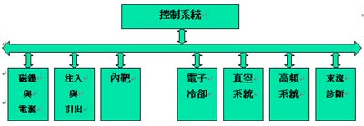 同步輻射設備以系統(tǒng)分類可分為磁鐵系統(tǒng)、電源系統(tǒng)、高頻系統(tǒng)、注入與引出系統(tǒng)、電子冷卻系統(tǒng)、內靶系統(tǒng)、真空系統(tǒng)、束流診斷系統(tǒng)、控制系統(tǒng)、準直與測量系統(tǒng)。系統(tǒng)架構圖如下: