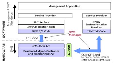 由圖二我們可以看出,IPMI的界面以及上層的管理都需求一些軟件來(lái)支持,以下將簡(jiǎn)略的描述IPMI所涉及到的軟硬件種類: