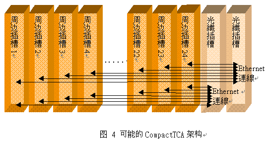 高可靠度CompactPCI 系統(tǒng)的下一步發(fā)展將是去除系統(tǒng)插槽(system slot);因為應(yīng)用程序利用現(xiàn)今系統(tǒng)的IP互聯(lián),PCI總線逐漸成為派不上用場的費(fèi)用。PICMG協(xié)會現(xiàn)正進(jìn)行CompactTCA的規(guī)格制訂,CompactTCA規(guī)格可望結(jié)合AdvancedTCA(PICMG