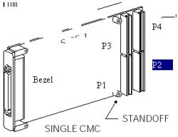 PMC標(biāo)準(zhǔn)是兩個(gè)IEEE標(biāo)準(zhǔn)的集合,IEEE P1386規(guī)范了通用中介承載板(CMC)的結(jié)構(gòu),IEEE P1386規(guī)范了通用中介承載板(CMC)的物理和外圍層。P1386標(biāo)準(zhǔn)定義了規(guī)格尺寸,聯(lián)接頭和電氣互聯(lián),P1386.1把PCI總線信號映像到P1386板卡上。CMC規(guī)范定義了兩種模塊尺寸:單((74mm x 149mm)和雙(149mm x 149mm),CMC上的前突起部分用來接通I/O,通過標(biāo)為P1、P2、P3、P4的四個(gè)聯(lián)接頭與CMC互聯(lián)。下圖是一個(gè)單寬度CMC板。