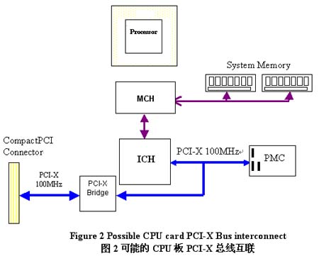 最初的PMC規(guī)范支持33MHz和66MHz PCI總線操作。在2002年,VITA標(biāo)準(zhǔn)化組織認(rèn)識到了增加對PCI-X總線操作支持的必要性。VITA-39規(guī)范在PMC P1中加入了PCIXCAP信號,此信號使得PMC同時(shí)支持66, 100 和133MHz PCI-X處理。VITA-39規(guī)范也包含了用以定義在不同操作頻率下支持的最大PCI負(fù)載所需的仿真工作。這是非常重要的,因?yàn)榇蠖嗍荘MC承載板還有其它的板載PCI設(shè)備。在承載板上的設(shè)備和PMC間共享PCI總線會對總線操作產(chǎn)生一些難以預(yù)見的挑戰(zhàn)。如果承載板的PCI總線段運(yùn)行在PCI-X 133MHz,而PMC被安裝在33MHz總線段上時(shí)總線段將運(yùn)行于33MHz,需小心使用支持PCI-X的PMC承載板,確保識別出同共享PCI總線的任何其它設(shè)備間產(chǎn)生的沖突。在下面的例子中,在PMC和PCI-X橋之間共享100MHz PCI-X總線,當(dāng)未安裝PMC時(shí),該總線將運(yùn)行于PCI-X 100MHz.,而當(dāng)安裝了33MHz PCI PMC后,將運(yùn)行于33MHz PCI,這就影響了bridge的吞吐量。