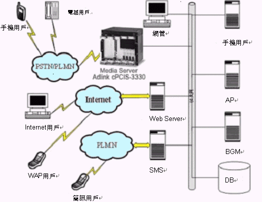 Server)。它采用CompactPCI架構(gòu),完全勝任通訊領(lǐng)域?qū)υO(shè)備的嚴(yán)格要求。BGM的核心硬件采用NMS高密度和高DSP資源CG6500C系列板卡,把PSTN接口、各種電信協(xié)議、綜合的IVR功能、全雙工回音消除、語(yǔ)音編碼、傳真處理、會(huì)議應(yīng)用、高速以太網(wǎng)口以及包協(xié)議等多種功能集中在一個(gè)單槽模塊上。