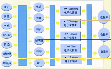 、電子化覆蓋(e-Coverage)、電子化營銷(e-Marketing)、 電子化銷售(e-Sale)和電子化培訓(e-Training)等內容。