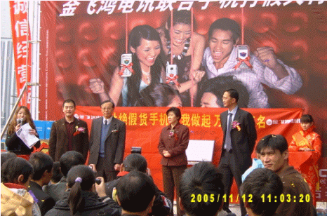11月12日上午,賽迪呼叫中心與京城著名手機連鎖賣場--金飛鴻電訊聯(lián)手,在金飛鴻在首體店舉行"95121315手機防偽查詢熱線指定合作單位"揭牌儀式,在國家信息產業(yè)部的認證下,成為京城首個"手機防偽查詢熱線指定合作單位",迎來了京城手機賣場打假維權的規(guī)范化時代。