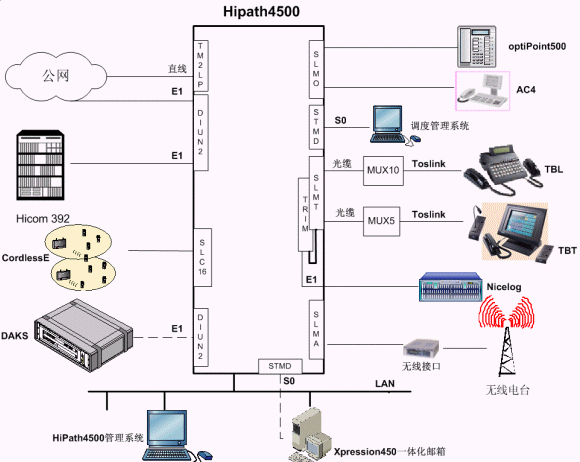 安全飛行是航空公司的首要目標之一。HiPath 4500通信平臺在中央控制單元及交換網(wǎng)絡(luò)等部分提供了雙工配置,從而在緊急情況下提供了最大的網(wǎng)絡(luò)可用性。作為AOC通信架構(gòu)的核心設(shè)備,HiPath 4500保證了可靠和安全的通信服務(wù)。這款PBX(專用分組交換機)通信平臺可支持高達5760個端口,從而提供了一個面向未來需求的、切合實際的解決方案。在此次項目中,它也是連接不同應(yīng)用產(chǎn)品的核心設(shè)備。