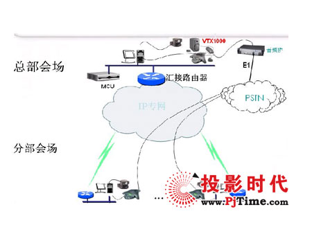 VTX1000電話會(huì)議設(shè)備,主會(huì)場程控交換機(jī)機(jī)房配備一套可行MPS2000音頻橋;其他各分會(huì)場只需要分別配備一套POLYCOM