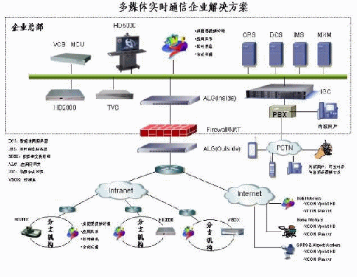 VCON提供了以HD系列的視頻終端產(chǎn)品和以VCB系列的多點控制單元(MCU)產(chǎn)品來構(gòu)建基于IP網(wǎng)絡(luò),采用H.323協(xié)議作為標(biāo)準(zhǔn)協(xié)議的視頻通信解決方案。通常主會場選擇會議室型終端HD5000,該終端在64Kbit/s下就可以實現(xiàn)畫面流暢的動態(tài)雙流;主會場也可以選擇機架式會議終端HD2000,這樣主會場可以選配正裝和吊裝攝像機,拍攝會場不同角度的場景;多點控制單元(MCU)選擇VCB3000,同時可以為領(lǐng)導(dǎo)、個人桌面或者出差用戶單獨配置支持H.323標(biāo)準(zhǔn)的Vpoint HD軟終端,該終端是目前業(yè)界惟一支持H.264、雙流、組播接受以及遠(yuǎn)程控制的軟終端產(chǎn)品。