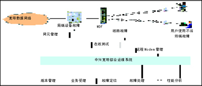 依賴于豐富的寬帶網(wǎng)絡(luò)實際運營經(jīng)驗和強大的技術(shù)實力,通過對以上現(xiàn)狀的分析和總結(jié),中興通訊開發(fā)了綜合寬帶運維系統(tǒng),包括在線測試、M+1保護、遠(yuǎn)程Modem管理等功能。