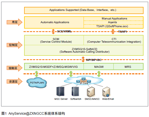 中興通訊AnyService@ZXNGCC多媒體統(tǒng)一接觸中心系統(tǒng)以中興通訊ZXMSQ10多媒體軟排隊機(jī)系統(tǒng)為基礎(chǔ),基于軟交換技術(shù)。ZXMSQ10由接入網(wǎng)關(guān)和軟排隊機(jī)兩個核心部件組成,語音、視頻呼叫(呼入和呼出)通過ZXMSQ10多媒體軟排隊機(jī)匯聚到AnyService@ZXNGCC系統(tǒng),其他媒體通過MAGW接入到NGCC系統(tǒng),同時AnyService@ZXNGCC也選擇最佳的媒體類型將信息主動反饋給用戶,形成雙向溝通的渠道,實現(xiàn)呼叫中心系統(tǒng)的被動服務(wù)和主動服務(wù)。