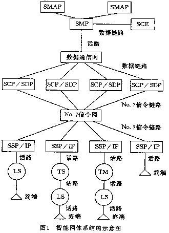 --智能網(wǎng)是通過業(yè)務(wù)交換點(diǎn)(SSP)、業(yè)務(wù)控制點(diǎn)(SCP)、數(shù)據(jù)庫(SDP)、智能外設(shè)(IP)以及業(yè)務(wù)管理點(diǎn)(SMP)、業(yè)務(wù)生成環(huán)境(SCE)等來生成和實(shí)現(xiàn)新業(yè)務(wù)的。它可以為所有的通信網(wǎng)絡(luò)服務(wù),無論是PSTN、PSPDN、PLMN、N-ISDN。圖1所示是PSTN、PLMN、N-ISDN還是B-ISDN。圖1所示為我國(guó)目前智能網(wǎng)的結(jié)構(gòu),其中的SMAP是業(yè)務(wù)管理接入點(diǎn)。LS是市話交換,TS是長(zhǎng)途交換級(jí),TM為匯接局。