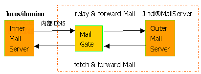 這種方案在有一定規(guī)模的企業(yè)比較典型,內(nèi)部網(wǎng)為L(zhǎng)otus/domino或Exchange的群件系統(tǒng),為內(nèi)部用戶提供smtp, pop3 服務(wù),一般為內(nèi)部IP地址和內(nèi)部帳戶,不具有直接發(fā)送外部郵件的功能。如果要發(fā)送外部郵件,需要配置smtp
