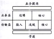 業(yè)務(wù)層的基本功能是在由傳送層提供的“電路”中把負(fù)荷進(jìn)行“整形”并進(jìn)行信息的交換,其目標(biāo)是提升每一個(gè)比特的價(jià)值。業(yè)務(wù)層被橫切為邊緣和核心兩大部分,界線是10萬(wàn)分組/s。在業(yè)務(wù)層,數(shù)據(jù)分組被單獨(dú)處理或者作為“流”(與特定用戶(hù)或應(yīng)用相關(guān)的分組串)來(lái)處理,老的技術(shù)包括幀中繼和ATM,新的技術(shù)MPLS有可能成為ATM的替代技術(shù)。