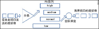PQ機(jī)制對(duì)報(bào)文進(jìn)行分類,將所有報(bào)文分成最多至4類,分別屬于PQ的4個(gè)隊(duì)列中的一個(gè)。然后,按報(bào)文的類別將報(bào)文送入相應(yīng)的隊(duì)列。PQ的4個(gè)隊(duì)列分別為高優(yōu)先隊(duì)列、中優(yōu)先隊(duì)列、正常優(yōu)先隊(duì)列和低優(yōu)先隊(duì)列,它們的優(yōu)先級(jí)依次降低。在報(bào)文出隊(duì)的時(shí)候,PQ首先讓高優(yōu)先級(jí)隊(duì)列中的報(bào)文出隊(duì)并發(fā)送,直到高優(yōu)先隊(duì)列中的報(bào)文發(fā)送完,然后發(fā)送中優(yōu)先隊(duì)列中的報(bào)文。同樣,直到發(fā)送完,然后是正常優(yōu)先隊(duì)列和低優(yōu)先隊(duì)列。這樣,分類時(shí)屬于較高優(yōu)先級(jí)隊(duì)列的報(bào)文將會(huì)得到優(yōu)先發(fā)送,而較低優(yōu)先級(jí)的報(bào)文將會(huì)在發(fā)生擁塞時(shí)被較高優(yōu)先級(jí)的報(bào)文搶先。使得實(shí)時(shí)業(yè)務(wù)(如Video)的報(bào)文能夠得到優(yōu)先處理,非實(shí)時(shí)業(yè)務(wù)(如E-mail)的報(bào)文在網(wǎng)絡(luò)處理完實(shí)時(shí)業(yè)務(wù)后的空閑中得到處理。既保證了實(shí)時(shí)業(yè)務(wù)的優(yōu)先,又充分利用了網(wǎng)絡(luò)資源。
