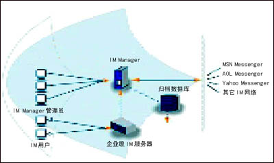除了這些產(chǎn)業(yè)巨頭以外,巨大的IM管理市場也培育了許多專業(yè)的IM管理廠商。這些廠商的產(chǎn)品可以外掛至大公司的IM服務(wù)平臺(tái),從而為企業(yè)用戶提供IM管理解決方案。IMlogic就是這樣一家公司,它的IM Manager產(chǎn)品可以管理來自微軟、雅虎、IBM、AOL以及Jabber等等公司的IM平臺(tái)。