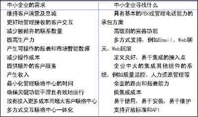 當(dāng)中小企業(yè)從“非正式”轉(zhuǎn)向“正式”客戶中心操作時(shí),他們需要與大型企業(yè)相同的客戶中心能力。對于這些企業(yè),合適的解決方案必須要解決一個(gè)重要的業(yè)務(wù)問題,例如以易于客戶聯(lián)絡(luò)的各種方式交流,使其成為真正的客戶中心。也許更重要的是,實(shí)現(xiàn)成本必須處于控制之下且管理良好。中小企業(yè)期望的是功能完善的客戶聯(lián)絡(luò)中心,但是價(jià)格必須能夠承擔(dān)得起,低花費(fèi),低培訓(xùn)成本,短期內(nèi)即可實(shí)現(xiàn)。