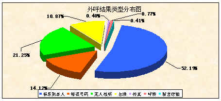 看到這一數(shù)據,精明的管理者可能要坐不住了。如何把這部分耗費的時間能有效的利用起來呢?而預測式的外呼系統(tǒng)正是用來解決這個問題的,其工作原理是系統(tǒng)在后臺根據某些設置條件成批的撥出電話,如果這個電話有人應答系統(tǒng)將立即將這條線派給空閑的坐席代表,如果是占線或者無人接聽等情況,系統(tǒng)則自動記錄下這次的聯(lián)系結果然后再撥打另一個電話。其結果是系統(tǒng)通過后臺的預撥和篩選不斷的將有效電話派給坐席,外呼坐席實際上就像一個呼入坐席,在不斷的處理著系統(tǒng)自動接入的電話,整體的工作效率將大為改善!