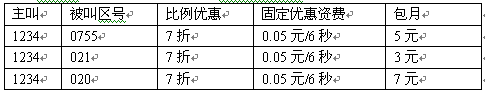 根據主被叫的區(qū)號、局向關系進行優(yōu)惠。這種優(yōu)惠是對主被叫關系優(yōu)惠的擴展,只是從單一號碼延伸到號碼群。