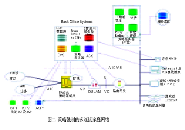 運(yùn)營商基礎(chǔ)網(wǎng)絡(luò)形形色色的演化,歸根結(jié)底都圍繞著運(yùn)營商最關(guān)心的利潤增長問題。隨著全球投入使用的DSL線路數(shù)目迅速接近1億,利用現(xiàn)有的DSL網(wǎng)絡(luò)提供更加豐富的高端服務(wù),成為業(yè)界共同矚目的焦點(diǎn)。采用QoS和可靠的端對端策略強(qiáng)制 (policy enforcement) 技術(shù)是目前許多應(yīng)用軟件的主要特征。如何把這些特性應(yīng)用到DSL網(wǎng)絡(luò)上呢?