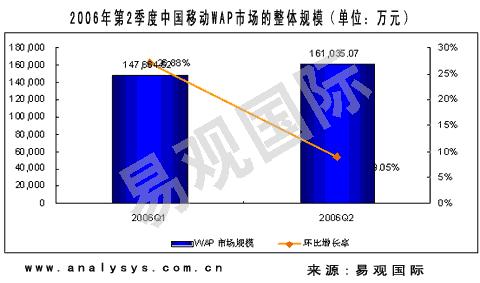 圖:2006年第二季度中國移動 WAP 市場的整體規(guī)模