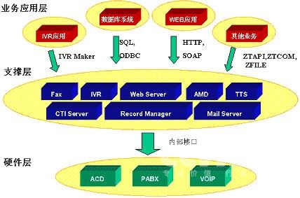 自動外撥服務器:提供集中自動呼出管理,可實現(xiàn)用戶預約呼叫、大眾呼叫、電話廣告、電話催繳費等業(yè)務?膳c不同的數(shù)據(jù)源相結合、在IVR以及人工系統(tǒng)的支持下,滿足各種不同的業(yè)務需求。