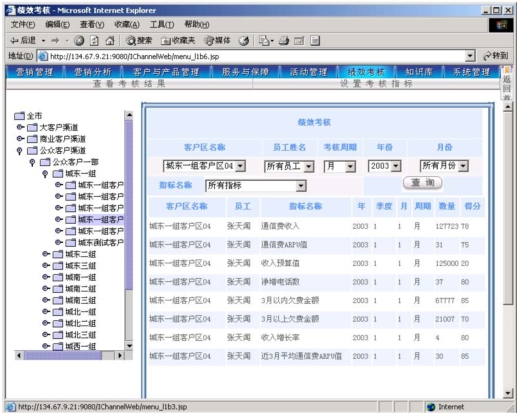 作為電信營銷服務(wù)支撐系統(tǒng),其主要功能是支撐營銷人員開展?fàn)I銷活動,并通過功能完善的考核系統(tǒng)幫助各級人員進行工作管理。本系統(tǒng)可以對KPI指標進行靈活的設(shè)定,可以靈活定義多種參與考核的數(shù)據(jù)來源,使得各級主管能夠?qū)蛻艚M、社區(qū)(商業(yè)客戶區(qū)、農(nóng)村統(tǒng)包區(qū))的營銷服務(wù)工作進行考核評分。考核周期可以通過參數(shù)進行設(shè)定(一般以月為單位)。