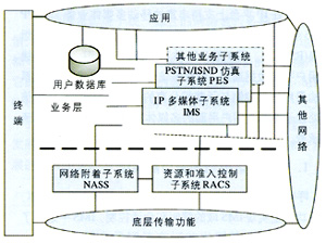 - PSTN/ISDN仿真子系統(tǒng)(PES):為經(jīng)過網(wǎng)關(guān)連接到IP網(wǎng)的傳統(tǒng)電話終端仿真PSTN/ISDN網(wǎng)絡(luò),保證傳統(tǒng)PSTN/ISDN業(yè)務(wù)的可用性和一致性,使得終端用戶不會意識到其實并沒有連接到PSTN/ISDN網(wǎng)絡(luò)。