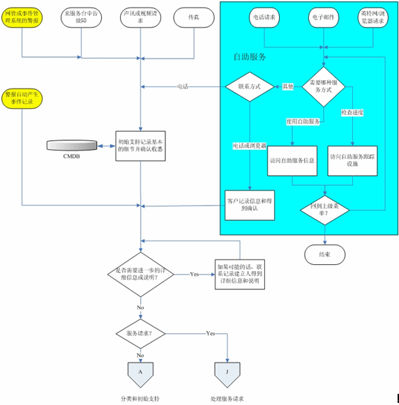 在記錄流程之后,事件將經(jīng)過分類和初始支持流程,而服務(wù)請(qǐng)求則被傳遞到“服務(wù)請(qǐng)求處理”流程。