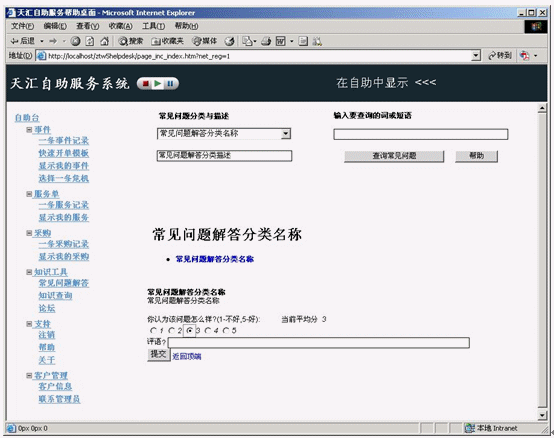 進(jìn)入自助服務(wù)系統(tǒng)的模式確定了對(duì)查詢者可用的功能。如天匯幫助臺(tái)應(yīng)提供標(biāo)準(zhǔn) Web 界面和搜索引擎。