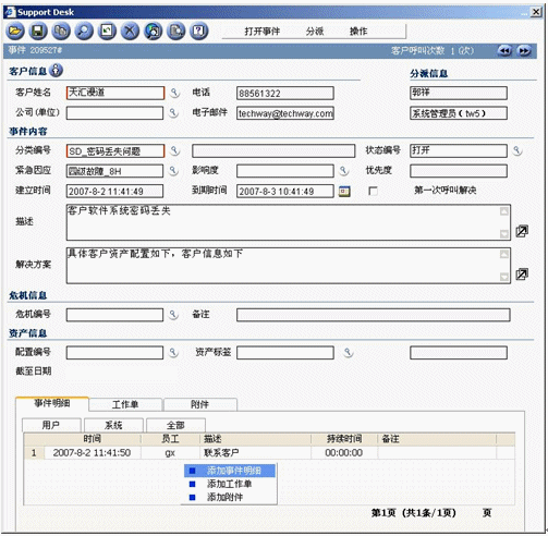 圖:添加事件明細(xì)來記錄采取的服務(wù)支持動(dòng)作