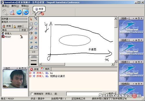 單擊會議列表后的“Enter”鏈接,即可啟動Samedata客戶端進(jìn)入相應(yīng)的視頻會議系統(tǒng)。一個典型的Samedata視頻會議界面如圖21所示。