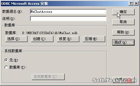 為使Mechat系統(tǒng)具有較高的運(yùn)行效率,我們將其添加數(shù)據(jù)庫支持,單擊“開始”/“設(shè)置”/“控制面板”,選擇“治理工具”/“數(shù)據(jù)源(ODBC)”,切換至“系統(tǒng)DSN”,單擊“添加”按鈕啟動ODBC數(shù)據(jù)源添加向?qū)Вx擇“MicrosoftAccessDriver(*、mdb)”,然后在DSN屬性設(shè)置窗口設(shè)置數(shù)據(jù)源名稱為“MeChatAccess”,選擇數(shù)據(jù)庫文件為D:\MeChat\SysData\db目錄下的MeChat、mdb(如圖23)。設(shè)置完畢,單擊“確定”退出。