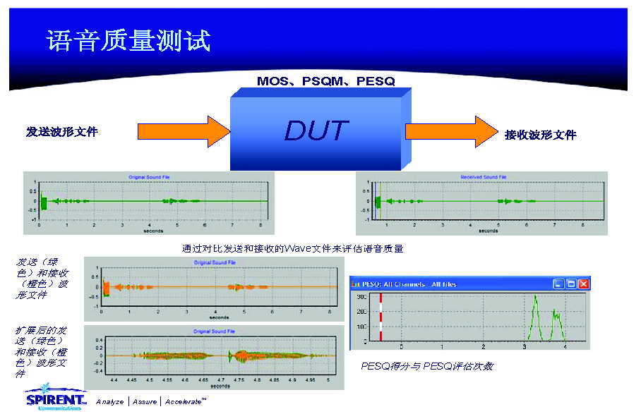 。7)時延(DELAY),指語音在傳輸系統(tǒng)中需要的傳輸時間。時延一般分為單向時延(One-Way-Delay)和雙向時延(Round-Trip-Delay);單向時延指語音(文件)從發(fā)端到收端的傳送時間,它直接反映了網絡傳輸質量,對話音質量產生間接影響;雙向時延指語音(文件)從發(fā)端到收端再回到發(fā)端所經歷的時間,一般比兩倍的單向時延要長,因為收端要對語音進行處理。單向時延的測試精度取決于兩點,其一為測試儀表的精度,其二為收發(fā)兩端采用的共同時鐘的精度,思博倫的Abacus5000能夠達到2ms的測試精度;網絡測試中若采用NTP-Server時鐘同步,則其時鐘精度為1~10ms,若采用GPS/CDMA為時鐘同步源,則其時鐘精度小于1ms。一般認為,單向時延應該不超過150ms。
