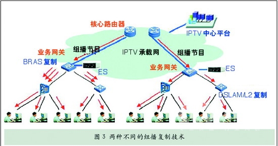 BRAS和DSLM都可以很好地解決組播問(wèn)題。但由于BRAS在DSLAM的上層,因此如果采用BRAS組播方式,其特點(diǎn)是投資相對(duì)較少、控制較為方便,但是下層從BRAS到DSLM,用戶(hù)終端的帶寬占用較大。如果采用DSLAM組播方式,其特點(diǎn)是投資相對(duì)較多,控制較復(fù)雜,但是下層從BRAS到DSLM,用戶(hù)終端的帶寬占用較小。因此要根據(jù)各地具體情況來(lái)決定采用在何處進(jìn)行組播復(fù)制。但無(wú)論如何,組播復(fù)制要確保不能影響用戶(hù)的收看質(zhì)量。