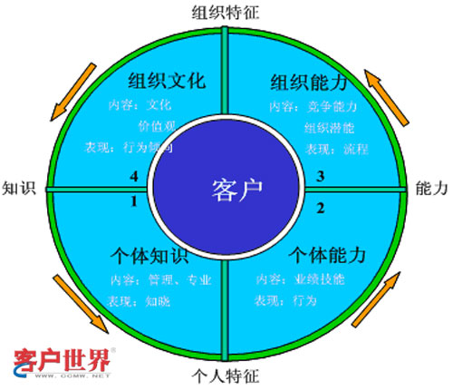 在訪談中發(fā)現(xiàn),淮安中心建立了以能力為核心的管理體系,該體系給了我很多的啟發(fā)。該體系明確了整個(gè)中心的管理思維、管理方法和管理對象。同時(shí),該體系通過圖示的方法進(jìn)行傳播,保證了整個(gè)中心人員對中心管理思維、管理方法和管理對象理解的一致性,進(jìn)而保證了整個(gè)組織成員行動(dòng)的一致。其組織能力循環(huán)圖如下: