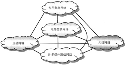 作為一個國家的公眾通信網(wǎng)絡,它是由多種不同性質(zhì)的互聯(lián)互通的電信網(wǎng)絡組成,它們基于不同的技術(例如電路交換、無線、IP和ATM)和架構(gòu),支持不同的協(xié)議和業(yè)務。不同的網(wǎng)絡類型包括電路交換網(wǎng)絡、衛(wèi)星網(wǎng)絡、無線網(wǎng)絡、專用集群網(wǎng)絡、IP多媒體通信網(wǎng)絡(見圖1)。目前,國內(nèi)一些大城市自建的數(shù)字集群政務專網(wǎng)可以作為應急通信的指揮平臺,它和公網(wǎng)應該是互相補充的關系。廣播網(wǎng)絡也是公眾通信網(wǎng)的補充,主要用于警示、公告信息的發(fā)布。