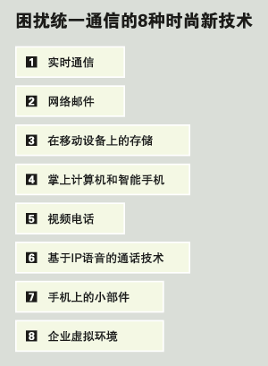 在最近由調查機構Yankee Groupe針對企業(yè)用戶進行的一項關于當前一些最時尚新技術應用狀況的調查中,受訪的500名被調查者中有86%承認,在工作場所,他們不止一次地使用了被調查的8種“時尚新技術”中的一種或幾種。這些設備和技術在其應用部署的目標上,一方面是出于業(yè)務創(chuàng)新的需求,另一方面則是出于對提升現有生產效率的考慮。