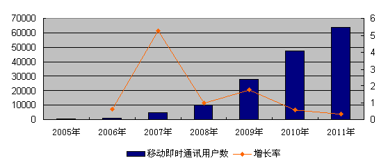 中國移動即時(shí)通訊用戶規(guī)模發(fā)展?fàn)顩r(2005-2011)