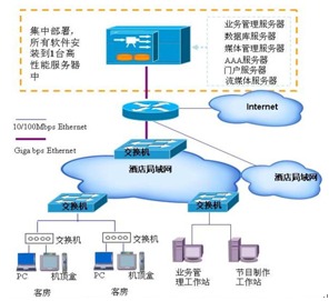 鄂州酒店級IPTV系統(tǒng)采用運營平臺集中部署,中心運營平臺涵蓋了中心媒體服務器,內容管理服務器,門戶服務器,業(yè)務管理服務器,數據庫服務器,AAA服務器,網管服務器、視頻編碼器、流媒體服務器等,后期根據客戶量的增加,可以將多媒體服務器獨立出來進行分布式的二層部署。