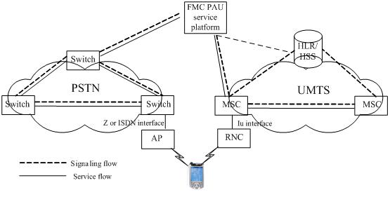 在FMC-PAU中,移動終端屬于雙模或多模終端,用戶使用該終端既可以接入到3G移動網(wǎng),也可以采用無線方式通過接入節(jié)點(AP)接入到PSTN網(wǎng)絡(luò)中。