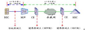 A口信令的第一段為MGW到BSC之間,是傳統(tǒng)的TDM方式,可以為高速鏈或低速鏈,物理承載類(lèi)型為電口、光口均可,此時(shí)可以采用傳統(tǒng)的信令檢測(cè)方式。第二段為MSC到MGW之間的IP接口(sigtran接口),采用FE的底層傳輸方式,其信令帶寬一般為100M,此時(shí)必須采用IP接口的采集方式(即鏡像技術(shù))。從以上看出,由于目前的軟交換分離架構(gòu),鏡像采集點(diǎn)有兩個(gè),可以是MGW側(cè),也可以是MSC側(cè)。