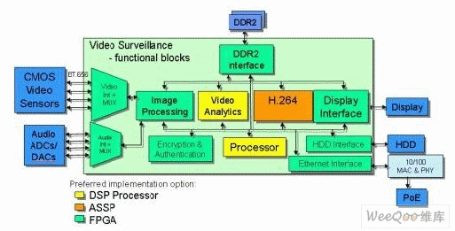 4. 在視頻監(jiān)控攝像系統(tǒng)中并非總是需要硬盤驅(qū)動器接口和以太網(wǎng)接口,但可作為選擇方案。
