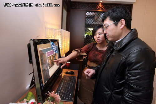 詩泥SPA總裁樓寧用惠普TouchSmart演示
