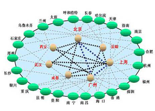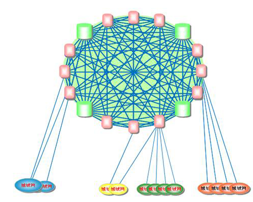 網(wǎng)絡(luò)扁平化概念就適時提出來了。現(xiàn)在,網(wǎng)絡(luò)扁平化已經(jīng)是運營商網(wǎng)絡(luò)建設(shè)的主要指導(dǎo)思想了。特別是中國聯(lián)通,由于歷史原因造成的骨干網(wǎng)節(jié)點并不夠多導(dǎo)致其南北方網(wǎng)絡(luò)品質(zhì)存在一定差異。而扁平化后能很好的解決此問題。下圖為網(wǎng)絡(luò)扁平化示意圖。