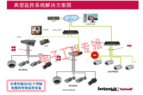 革命性的Intersil Techwell SLOCTM(Security Link over Coax)同軸電纜復(fù)合視頻傳輸解決方案是可通過一條同軸電纜同時傳輸模擬 CVBS 視頻和高清數(shù)字 IP 視頻信號的先進調(diào)制解調(diào)器解決方案,其采用最新MODEM PHY技術(shù)的傳輸解決方案,可以基于同軸電纜同時傳輸高清IP碼流和標(biāo)清模擬實時視頻。