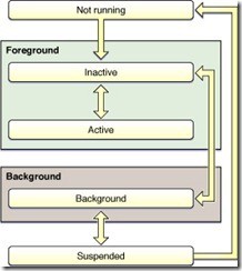 為了節(jié)約電池的電量,智能手機(jī)上的操作系統(tǒng)的一個(gè)基本策略是,盡量減少正在運(yùn)行的程序,這個(gè)道理很簡(jiǎn)單,運(yùn)行的程序越多,需要耗費(fèi)的 CPU 計(jì)算時(shí)間就越多,電量就省不下來(lái)。下面的圖是蘋果 iOS 設(shè)備應(yīng)用程序調(diào)度狀態(tài)圖,事實(shí)上蘋果設(shè)備是除了用戶正在操作的程序,其他打開的程序進(jìn)程盡可能都放到“掛起(Suspended)”的狀態(tài)下。在“掛起”的狀態(tài)下面,程序進(jìn)程處在休眠狀態(tài),不耗費(fèi) CPU 計(jì)算能力。當(dāng)用戶沒有對(duì)設(shè)備進(jìn)行操作的時(shí)候,整個(gè)系統(tǒng)處在休眠的低電狀態(tài)。(這里進(jìn)程的意思是:程序運(yùn)行實(shí)例)